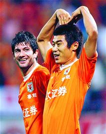 比賽之后的休息室里,矯哲還在問(wèn)韓鵬,“第一個(gè)球你是不是用頭頂進(jìn)去的?”韓鵬馬上糾正矯哲的說(shuō)法,“當(dāng)時(shí)球在我的側(cè)后方,我凌空用腳打進(jìn)去的。”泰山“空霸”韓鵬在“齊魯?shù)卤取敝忻烽_二度,幫助球隊(duì)奠定勝局的同時(shí)也找回了自己的狀態(tài)。