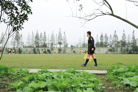 球員在菜地旁訓練。 圖片來源:華西都市報