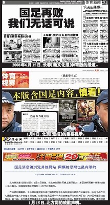 媒體以這樣的標題和版面設計方式來表達對國足的批評,讓人哭笑不得,不過,這從一個側(cè)面反映了球迷對中國足球恨鐵不成鋼的真實心情。