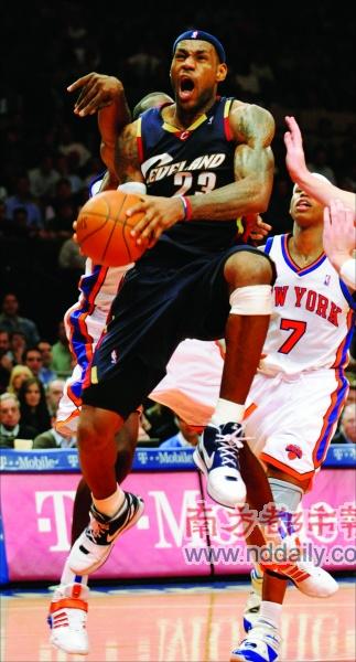 不過兩天前比賽的最后,麥迪遜花園球館里滿場響起“MVP”的呼聲,昨天的“皇帝”卻沒能享受如此待遇,雖然紐約人依舊對明年詹姆斯的加盟充滿期待,但主隊昨天直至最后仍未放棄獲勝希望讓主場球迷無法倒戈,終場前1分鐘尼克斯還僅以100比102落后兩分。可惜詹姆斯隨后以個人第11次助攻幫助伊爾戈斯卡斯上籃成功,終場前22秒又搶下關鍵籃板迫使對手犯規(guī),兩罰兩中完成了自己的得分50+,尼克斯無力翻盤。