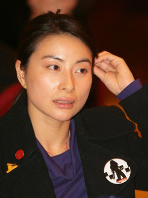 郭晶晶在活動期間,梳理自己的頭發(fā)。