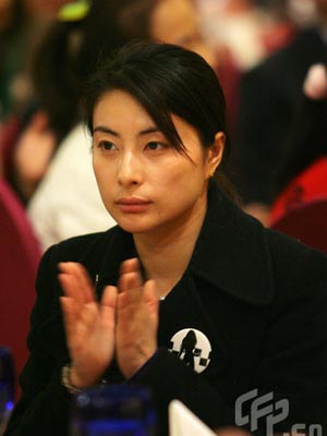 獨(dú)自前往的郭晶晶有些孤單,圖為她在為某領(lǐng)導(dǎo)講話勉強(qiáng)鼓掌。