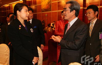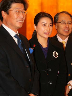 郭晶晶與日本友好人員交談中。