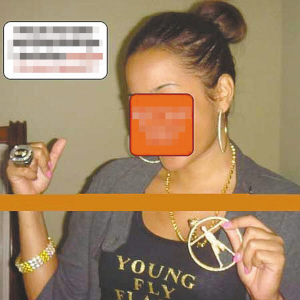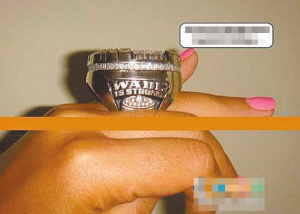 NBA巨星韋德剛剛向好萊塢女星尤尼昂求婚成功,結(jié)果又傳出緋聞。一名少女(上圖)將一組相片寄給網(wǎng)站,稱韋德和她一夜情后感覺很爽,大方地將大堆禮物送給了她,其中包括韋德唯一的總冠軍戒指(上圖)、佩飾金項(xiàng)鏈以及貼身T恤衫等。