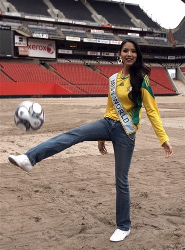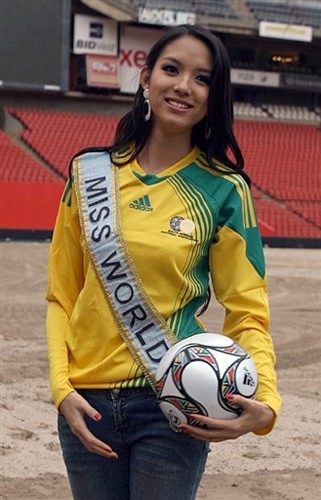 中新網(wǎng)11月21日電 當(dāng)?shù)貢r間22日,2009年聯(lián)合會杯抽簽儀式將在南非城市約翰內(nèi)斯堡舉行。包括世界小姐張梓琳在內(nèi)的各國佳麗應(yīng)邀前往,在約翰內(nèi)斯堡的埃利斯球場大秀球技。