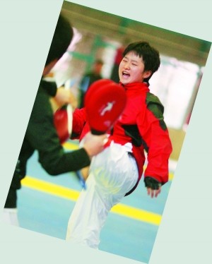 在軍體院的外訓(xùn)館中,近50名中韓一線跆拳道選手在韓國國家隊(duì)教練文元載的指導(dǎo)下發(fā)出歇斯底里的撕殺聲,其中那個(gè)清脆響亮的聲音則是來自北京奧運(yùn)冠軍吳靜鈺,個(gè)頭在隊(duì)中排行倒數(shù)第二的小女孩,用快準(zhǔn)狠且令人眼花繚亂的步伐猛踢著同訓(xùn)的韓國男隊(duì)員手中的腳板。混雜在近50名隊(duì)員中的她,身上絲毫不見奧運(yùn)冠軍級的“小灶”。