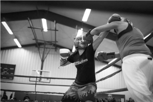對手確實(shí)沒那么強(qiáng)大。她沒坐過牢,只是個(gè)從明尼蘇達(dá)州坐了8小時(shí)長途車趕到這里的普通人,她抽煙,這是她練習(xí)拳擊10年來的第一場比賽。謝莉從鈴響的第一秒就開始猛擊,第二回合對手被強(qiáng)制數(shù)八,第三回合,謝莉左手推開對方的拳套,用右手猛擊,這次是對方在發(fā)抖。再過了一會,裁判舉起了謝莉的手。
