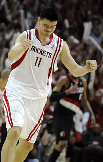 中新網(wǎng)5月1日 北京時(shí)間1日上午,火箭隊(duì)在主場迎戰(zhàn)波特蘭開拓者隊(duì)。憑借著阿泰斯特和姚明的出色表現(xiàn),火箭隊(duì)以92比76勝出,十二年來首次過關(guān)首輪比賽,闖入西區(qū)半決賽。姚明得到17分和10個(gè)籃板,與得到27分的阿泰斯特成為球隊(duì)晉級(jí)的最大功臣。