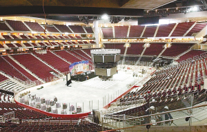 火箭的比賽不是在木地板上進(jìn)行的嗎?約什得意地笑了,“隱藏在255塊木地板下面,是一整塊冰!奔s什說完,立馬摳起一塊地板,讓記者親手觸摸到足足有1英寸厚的冰層。原來,豐田中心不單是火箭的主場,同時(shí)也是休斯敦冰球隊(duì)的主場。每當(dāng)火箭比賽前,豐田中心工作人員就會(huì)在冰面上鋪起木地板。當(dāng)冰球隊(duì)比賽前,木地板會(huì)被撤走。由于美國的冰球賽季幾乎和NBA賽季起止時(shí)間一樣,因此火箭隊(duì)整個(gè)賽季其實(shí)都是在冰面上比賽的!案鼡Q地板的過程需要4小時(shí)到6小時(shí),我們?yōu)榈匕寰幜颂?hào)的,可以更換得很快!奔s什說,由于常常是在冰球比賽第二天就會(huì)進(jìn)行籃球比賽,因此工作人員會(huì)通宵達(dá)旦地工作,以保證籃球隊(duì)第二天早上的訓(xùn)練。