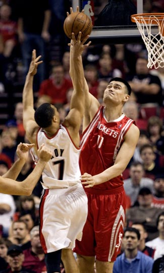 中新網(wǎng)4月19日電 北京時(shí)間4月19日,火箭旗開(kāi)得勝,在季后賽首輪的第一場(chǎng)比賽中客場(chǎng)以108-81輕取開(kāi)拓者。姚明在短短24分鐘內(nèi)9投9中得到24分9個(gè)籃板2次蓋帽。