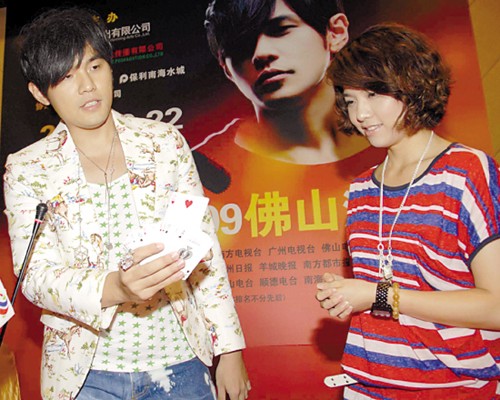 昨日下午,周杰倫以“雪碧”品牌代言人身份,來到廣州新長隆酒店舉行千人大型歌迷見面會,剛剛拍完電影《刺陵》的周杰倫似乎是在沙漠地帶待得太久,不僅主動要求記者提些“奇怪的問題”,而且有問必答,還在現(xiàn)場分別為歌迷與記者連玩了數(shù)場撲克魔術(shù)。他十分肯定地承認(rèn)自己玩魔術(shù)的確有“喧賓奪主”的嫌疑,但仍自夸“魔術(shù)玩得太好,我還想明年準(zhǔn)備做一場大型魔術(shù)主題演唱會”。