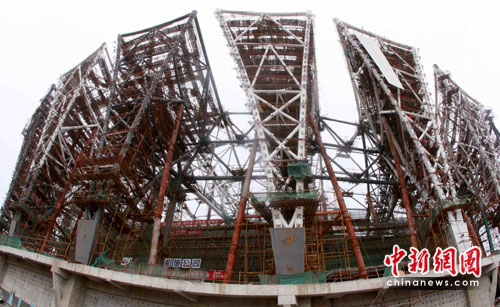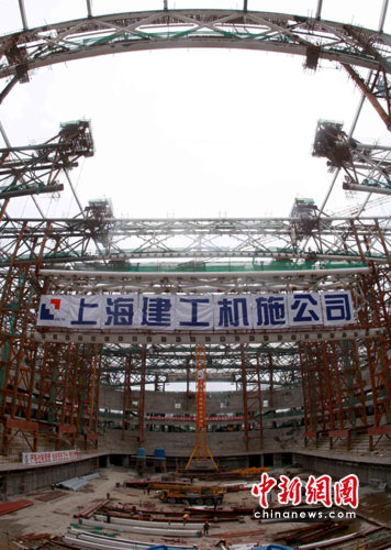 中新網(wǎng)上海3月30日電 (鄭瑩瑩 黃晨光)30日,上海建工機施公司建設者將最后一榀重65噸的鋼桁架起吊至上海東方體育中心的綜合館40米高的預定位置,標志著該工程主體鋼結構安裝全部完成。