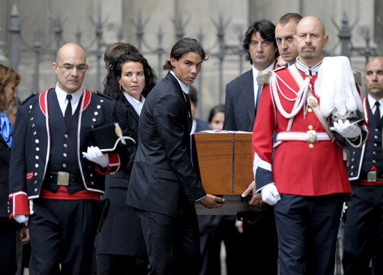 晚上18時(shí),他的葬禮在大教堂開(kāi)始,西班牙國(guó)王胡安-卡洛斯攜妻子索菲婭、王儲(chǔ)費(fèi)利佩及妻子、埃倫娜公主和克里斯蒂娜公主以及羅格、西班牙著名F1車手阿隆索、西班牙網(wǎng)球天王納達(dá)爾、巴薩俱樂(lè)部主席等出席。