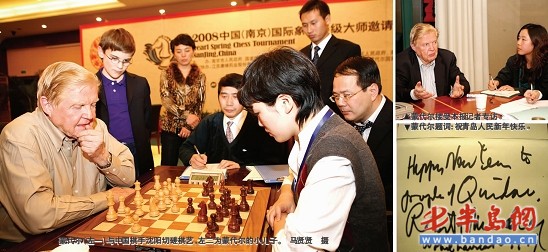 蒙代爾:國(guó)際象棋在國(guó)際上的影響僅次于足球,它與中國(guó)傳統(tǒng)象棋也有共通之處。還有一個(gè)小故事需要告訴你,就是我也想通過這次機(jī)會(huì)紀(jì)念一下我的好朋友菲舍爾。他曾經(jīng)打破了前蘇聯(lián)在國(guó)象領(lǐng)域30年的壟斷。