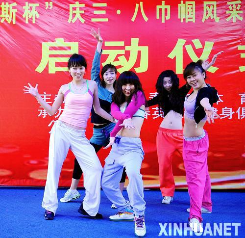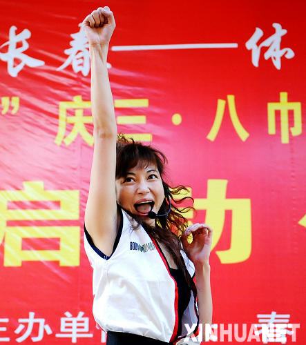 3月8日,長春市民在啟動儀式上表演健美操。當(dāng)日,由長春市體育局主辦的“慶三八巾幗風(fēng)采系列健身活動”正式啟動。此次活動歷時3天,包括健身咨詢、體質(zhì)檢測、健身展示、健身指導(dǎo)等內(nèi)容。