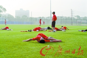 下午4時(shí),在朝鮮隊(duì)活動(dòng)了大約30分鐘后,記者大著膽子走到該隊(duì)教練席的跟前,由于教練們都在場(chǎng)上,座席上只有朝鮮足協(xié)派來(lái)的隨隊(duì)翻譯,這是一位愛(ài)笑的小伙子,學(xué)過(guò)一年的中文。他的微笑和熱情的招呼,讓記者沒(méi)了原來(lái)的惶恐,自在地觀看著朝鮮隊(duì)的訓(xùn)練。