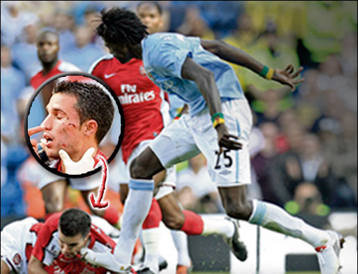 在攻進(jìn)曼城的第三粒進(jìn)球后,他狂奔百米來到阿森納球迷面前慶祝,結(jié)果這一挑釁行為讓他領(lǐng)到了黃牌警告。比賽中他還曾踩到“槍手”范佩西的臉,后者頓時(shí)掛了彩,但阿德巴約并未因此受到主裁判的懲罰。不過,荷蘭人賽后鄭重聲明,他認(rèn)為阿德巴約是故意傷人,他為此感到失望。