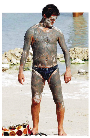 意大利南部小城大多有水溫從32到37攝氏度不等的溫泉,這些景點專門提供一些泥浴治療服務(wù)。來這里享受休閑的卡佩羅及其妻子就這樣一不小心落入了記者的鏡頭。與比賽場邊的威嚴姿態(tài)大相徑庭,鏡頭前只穿了一條黑色泳褲的卡佩羅從頭到腳、甚至包括臉部都涂滿了深灰色的泥漿,要不是那一頭標志性的卷發(fā),意大利人的身份還真有些難以“識別”。身邊的勞拉更將泥漿涂抹得辨別不出了比基尼的花色。低頭看看自己身上的“作品”還算令人滿意,63歲的卡佩羅于是走到勞拉身邊,和自己的老婆開起了玩笑。