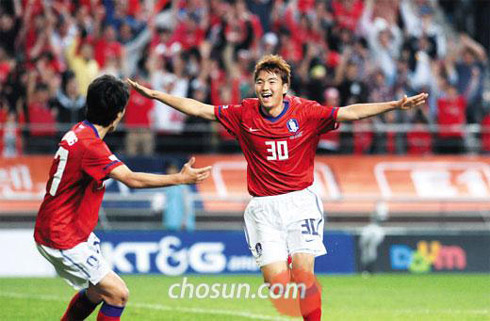 在世界杯開幕前26天進(jìn)行的韓國國內(nèi)最后一場熱身賽上,韓國隊(duì)以2比0戰(zhàn)勝南美球隊(duì)厄瓜多爾。當(dāng)天勝利的主角是李升烈和李菁龍這兩名年輕隊(duì)員。