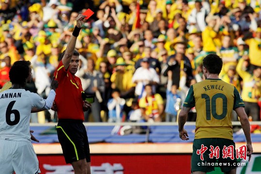 對(duì)澳大利亞隊(duì)的比賽,加納隊(duì)在上半場(chǎng)開(kāi)場(chǎng)后就完全處于上風(fēng),被澳大利亞隊(duì)打得幾乎無(wú)招架之力。憑借著霍爾曼的11分鐘的進(jìn)球,澳大利亞隊(duì)很快就取得了領(lǐng)先。不過(guò)在第24分鐘風(fēng)云突變,阿尤在澳大利亞隊(duì)門(mén)前射門(mén),守候在球門(mén)線上的澳大利亞隊(duì)核心球員科威爾情急之下飛身將球擋出的,但是裁判卻嚴(yán)厲地判罰他是故意用手球解圍,不但判罰點(diǎn)球,還出示紅牌將其罰下。