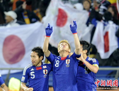 中新網(wǎng)6月25日電 北京時間今天凌晨,世界杯E組進(jìn)行了最后一輪的比賽,日本隊在與丹麥隊對決中表現(xiàn)出色,憑借著本田圭佑的一傳一射,日本隊3比1力克丹麥隊,與荷蘭隊攜手晉級16強。這也是韓國隊之后,第二支晉級16強的亞洲球隊。在1/8決賽中,他們的對手將是南美的巴拉圭。