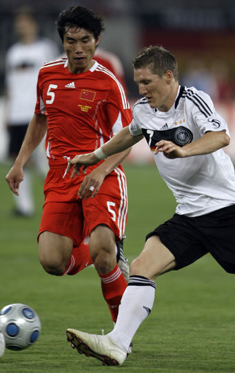 七十五分鐘,中國隊(duì)中場周海濱一腳遠(yuǎn)射,迫使德國門將恩克做出精彩的撲救動作。而除了施魏因斯泰格的一次左路突破外,體能下降明顯的德國隊(duì)幾乎沒有像樣的進(jìn)攻。終場哨響起,雙方一比一平分秋色。