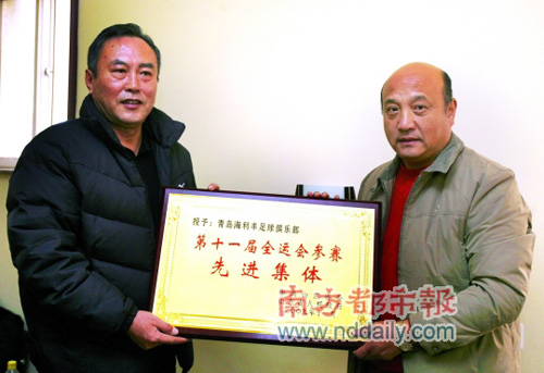在反賭風(fēng)暴掀起之后,青島海利豐也成為了焦點(diǎn)球隊(duì)之一。11月28日,原青島海利豐教練紀(jì)玉杰在昆明被警方帶走協(xié)助調(diào)查。另外,海利豐主教練蔡晟至今尚未歸隊(duì),具體去向未知。此前關(guān)于蔡晟“涉賭”的傳聞卻早已不脛而走。但昨天,青島海利豐俱樂(lè)部因?yàn)樵?009全運(yùn)會(huì)上為山東男足輸送了10名隊(duì)員,被山東省委省政府授予十一運(yùn)參賽先進(jìn)集體的榮譽(yù)稱號(hào)。