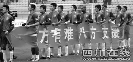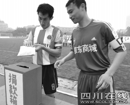 2:1的勝利結(jié)束之后,連續(xù)兩 場進(jìn)球的成足隊(duì)長李鋼說,“希望災(zāi)區(qū)的人們像我們今天比賽一樣,無論遇到什么樣的困難,只要我們團(tuán)結(jié)一心,只要我們選擇堅(jiān)強(qiáng),我們都能獲得最終勝利!”比賽結(jié)束之后,球迷散去的人群中還有纏著綠絲帶的志愿者球迷在募捐,“球賽盡管結(jié)束了,可是我們還想為災(zāi)區(qū)再多做一點(diǎn)事情,我們做得越多,他們受到的苦難就會(huì)越少。”
