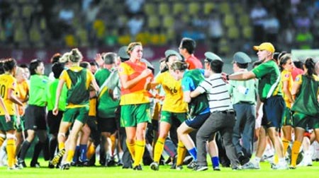 8月3日晚,中國青年女足在武漢2∶1險勝澳大利亞隊,亞青賽兩連勝提前小組出線,但在比賽結束后,雙方發(fā)生沖突,一名澳大利亞球員將中國球員張越打倒,雙方替補球員和教練見狀全部沖到場內(nèi),一片混亂之后,經(jīng)過亞足聯(lián)官員的親自協(xié)調,事件才平息。據(jù)了解,澳球員之所以“發(fā)飆”,是覺得輸?shù)煤堋案C囊”,覺得“中國隊做了裁判工作”。路透社的報道說“這起事件無疑對中國足球的聲譽又是一次打擊。 ”但事實上,算上上周日中超聯(lián)賽重慶隊主教練阿里·哈恩的“瘋狂咆哮”,連續(xù)兩次都是外國教練和外國球員在中國綠茵撒野,這里必須要問一句:憑什么?