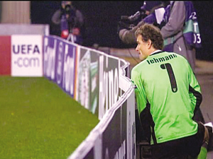 然而在這場比賽中,卻發(fā)生了令人瞠目結(jié)舌的一幕。原來就在這場生死戰(zhàn)的比賽進行過程中,斯圖加特40歲的主力門將、前德國頭號國門萊曼,突然離開其鎮(zhèn)守的球門,接著翻過球門后的廣告牌,然后迅速選擇一個在裝滿攝像與攝影設(shè)備的箱子邊蹲下身,這個可疑且神秘的動作持續(xù)了數(shù)十秒,萊曼才起身來到球門邊。巧合的是,萊曼剛回到球門前,對方就發(fā)動了一次進攻。負責轉(zhuǎn)播這場比賽的天空體育電視臺的攝像機捕捉到了這一細節(jié),但由于萊曼的動作被箱子擋住,因此無法確切拍攝到萊曼到底在干什么。不過賽后,德國著名的圖片報根據(jù)拍攝的照片和錄像回放來分析,萊曼十有八九是突然內(nèi)急,于是直接在廣告牌下借助箱子的遮擋方便了一下。