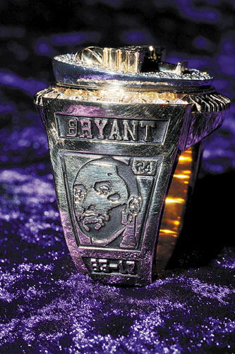 以前的總冠軍戒指都要分別刻上不同球員的名字和號碼,新版湖人總冠軍戒指又作出創(chuàng)新,增加了球員頭像。每一枚總冠軍戒指又會選出一顆鉆石刻上湖人的“L”字母,不同戒指的這些“L”所處鉆石的位置又會不同,必須通過高倍顯微鏡才能看到,因此每人的總冠軍戒指都是自己獨一無二的身份證明。