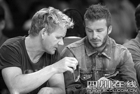 和小貝一起看球的,是英國頂級廚神戈登·拉姆塞,因其在各種名人烹飪節(jié)目中粗魯、嚴(yán)苛,以及追求完美的風(fēng)格,被媒體稱為“地獄廚師”。貝克漢姆與拉姆塞的關(guān)系匪淺,正是小貝幫助拉姆塞進(jìn)入了洛杉磯的名人圈子,并幫助他打響了在美國的招牌。當(dāng)天,拉姆塞就坐在小貝包下的價值2200美元的座位上,也許是場上湖人的表現(xiàn)確實(shí)不佳,兩人無聊之