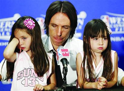 在賽后的發(fā)布會(huì)上,納什兩個(gè)可愛(ài)的女兒也出現(xiàn)在了現(xiàn)場(chǎng),聽(tīng)到爸爸的一番辛酸言論,兩個(gè)女兒當(dāng)場(chǎng)落淚,而看到女兒落淚,納什再也控制不住自己的情緒,流下了兩行悲壯的英雄淚。(金鑫)