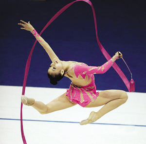 藝術(shù)體操最講究的是身體的柔軟度,這需要從小塑造。四五歲的小女孩經(jīng)常練的一個動作,就是前后腿架在凳子上,讓屁股騰空,至少堅持10分鐘以上,一天則要反復幾次。周怡說:“這個真的很難,很苦。”