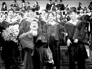 “最近幾年,我碩士班畢業(yè)推遲,留學(xué)放棄,生孩子計劃推遲,都是為了2008年奧運會,可惜也沒參加上。”回憶起近幾年的奮斗史,老張感慨頗多,“不過今天參加畢業(yè)典禮還是很幸福,也很滿足。”