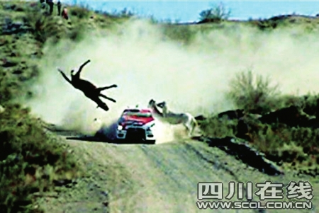 阿根廷賽車手費·比亞格拉正在阿根廷南部參加汽車拉力賽。賽車行駛到內格羅河省的羅卡將軍城附近時,遇到三匹馬正在穿越公路。比亞格拉只看到其中兩匹,等發(fā)現第三匹馬時已經來不及躲避了,賽車和馬猛烈相撞后將馬撞得凌空而起。這起事故造成這輛三菱賽車的前半部分損傷不輕,但是比亞格拉僅僅因為事故耽誤了30秒鐘,隨后駕駛著賽車繼續(xù)前進,并且完成了當天的全程比賽。(新華社)