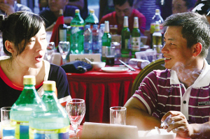 李琳和李大雙的桌牌并列放在一張圓桌上——主辦方還真是細(xì)心。大概是因?yàn)楹芏嗝襟w不能進(jìn)入的緣故,飯桌上的李琳和李大雙邊吃邊聊之余更常常咬耳朵竊竊私語(yǔ),每次李琳在李大雙耳邊說(shuō)完話都會(huì)深情款款地凝望自己的情人,顯得非常恩愛(ài)。