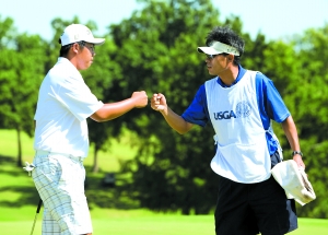 “謝謝爸爸告訴我,一起來美國打高爾夫。一切的辛苦都是值得的!卑脖鼊踪惡蟊硎靖兄x父親的支持,“我要努力贏得更重大的比賽!倍瞳@得冠軍一樣讓他高興的是,10天之后媽媽將飛來與他見面。鐘文