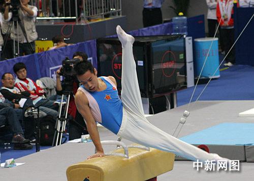 21日晚的中國第十一屆運動會主場館——濟南奧體中心體操名將薈萃。在此間進行的體操單項決賽中,被譽為“小馬神” 的北京奧運會男子體操鞍馬冠軍肖欽再次亮相鞍馬賽場。經(jīng)過與實力選手的一番激烈角逐,這位“鞍馬王子”奪的金牌,“策馬揚鞭”朝天嘯。