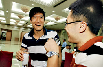 昨晚(26日),普陀區(qū)為該區(qū)輸送的優(yōu)秀運動員參加第十一屆全運會,在區(qū)政府舉行了出征送行會,劉翔和其他優(yōu)秀運動員代表一起,出席了送行會。孫海平教練開玩笑說:“也別祝我們好成績了,像劉翔現(xiàn)在,平安順利就好了,我沒別的要求!