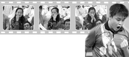 開賽后,王皓很快2:0領(lǐng)先,彭陸洋看得興高采烈。沒(méi)想到,馬琳迅速調(diào)整了狀態(tài),連追兩局。第五局,王皓8:10落后,彭陸洋嚇得閉上了眼睛,不敢看比賽。過(guò)了好一會(huì)兒,她才睜開眼睛,當(dāng)?shù)弥杏演斍蚝,顯得非常難過(guò)。