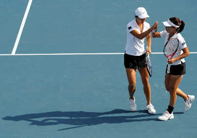 當衛(wèi)冕冠軍小威不敵揚科維奇止步女單八強時,看臺上劃著十字架祈禱的小威母親或許就意識到這天并不屬于威廉姆斯家族。昨天,抱著“拼男雙”的想法,鄭潔/晏紫演繹了一場精彩的逆轉之戰(zhàn),她們以3-6/6-4/6-2戰(zhàn)勝威廉姆斯姐妹連續(xù)三年晉級四強。