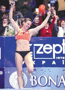 昨天,在烏克蘭頓涅茨克進(jìn)行的室內(nèi)田徑賽中,伊辛巴耶娃以4米95的成績(jī)打破女子室內(nèi)撐桿跳高世界紀(jì)錄。