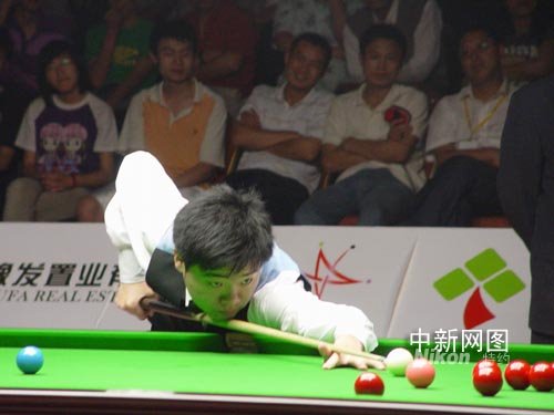 中巡賽決賽丁俊暉在賽場上的精彩一幕。 朱曉娟 攝