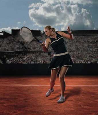 莎娃喜歡奧黛麗·赫本并不是秘密,所以上世紀(jì)20年代的復(fù)古風(fēng)也是美少女最鐘愛(ài)的。這款為法網(wǎng)設(shè)計(jì)的“巴黎裙”就烙刻上了這樣的復(fù)古印記!鞍屠枞埂碧鹈蓝拢渲械男『谌乖卦屗2006年美國(guó)網(wǎng)球公開(kāi)賽上艷驚四座,外加復(fù)古的法式紐帶———散發(fā)出正宗蒂梵尼珍珠扣的細(xì)節(jié)魅力,另外還有斜裁雙層裙擺和精美緞帶。為了能夠凸顯莎娃對(duì)愛(ài)犬多西的愛(ài),增添了一些法國(guó)元素。耐克設(shè)計(jì)師們將她的這些個(gè)人至愛(ài)細(xì)節(jié)都被融入了賽服系列。