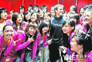 在雨中給球迷簽完名后,羅布雷多又來到了中網(wǎng)啦啦隊的休息室,西班牙帥哥的出現(xiàn)立刻令這個原本安靜的房間喧鬧了起來。女孩們你一言我一語地爭相向這位隨和的網(wǎng)球明星問好,其中不僅有中文,還夾雜著英語和西班牙語。在與所有的啦啦隊員合完影之后,羅布雷多還不忘用中文向這些在賽場上給她加油的女孩們說一聲“謝謝”。后來賽事工作人員告訴記者,見啦啦隊是羅布雷多自己主動提出來的,就是為了向女孩們表示感謝。