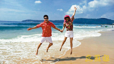 該報稱,“國慶”前夕,從未到過三亞的楊威和楊云專程前來考察,對婚禮舉辦地點很滿意,當?shù)鼗閼c公司承諾將致力于讓婚禮“浪漫得讓人心醉”。楊云從三亞考察完婚禮地點后,抑制不住將做新娘的喜悅心情,把與楊威在三亞海濱的甜蜜照片放到了博客上,著紅衣白褲情侶裝的一對金童玉女,映襯著藍天、碧海、麗日,濃得化不開的濃情蜜意,向世人訴說他們愛的羅曼史。