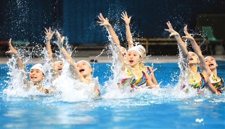 伴隨著悠揚(yáng)的樂(lè)曲,水花蕩漾中美麗的“川花”姑娘翩翩起舞……昨晚,即將出征全國(guó)錦標(biāo)賽的四川花樣游泳隊(duì)在四川省游泳館進(jìn)行了公開(kāi)彩排,不少市民前來(lái)觀看,與這支美麗的花泳隊(duì)來(lái)了個(gè)近距離接觸。