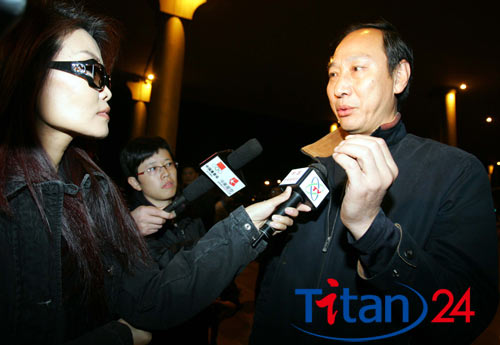 劉翔結(jié)束美國西行回國,孫海平在機場接受采訪。