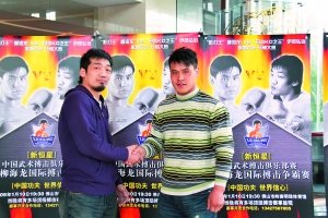 日前,柳海龍國際搏擊爭霸賽的兩位領(lǐng)銜主打柳海龍與伊賀弘治同時(shí)來到佛山。為參加1月10日的“海弘大戰(zhàn)”進(jìn)行賽前最后的準(zhǔn)備。兩位選手在賽事主辦方的安排下,進(jìn)行了初次見面。